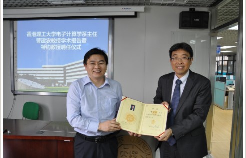 计算机软件学院常务副院长、党委书记明仲教授主持会议并介绍了曹建农教授的简历及其主要学术成果,并颁发了我校特约教授聘任证书。