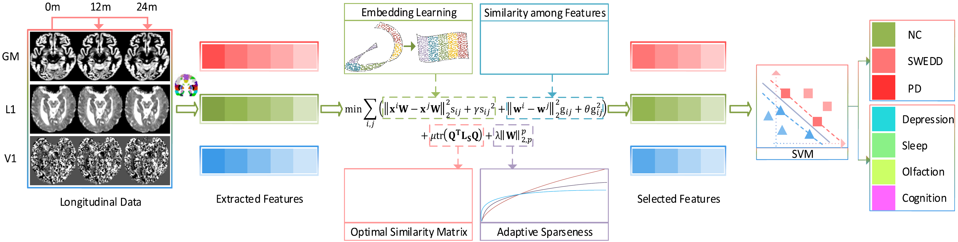 title={Parkinson's Disease Classification and Clinical Score Regression via United Embedding and Sparse Learning From Longitudinal Data}, author={ Huang, Z. and Lei, H. and Chen, G. and Frangi, A. F. and Lei, B. },