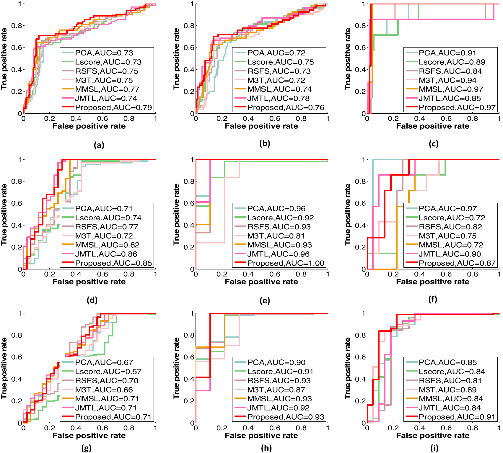 Fig. 2. Comparison of ROC curves for the competing approaches on longitudinal multimodal data.