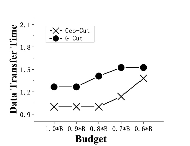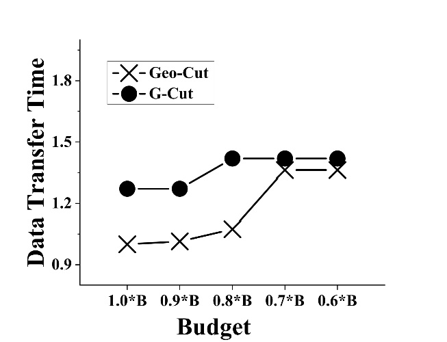 Fig. 19: Normalized inter-DC data transfer time under different budget constraints.
